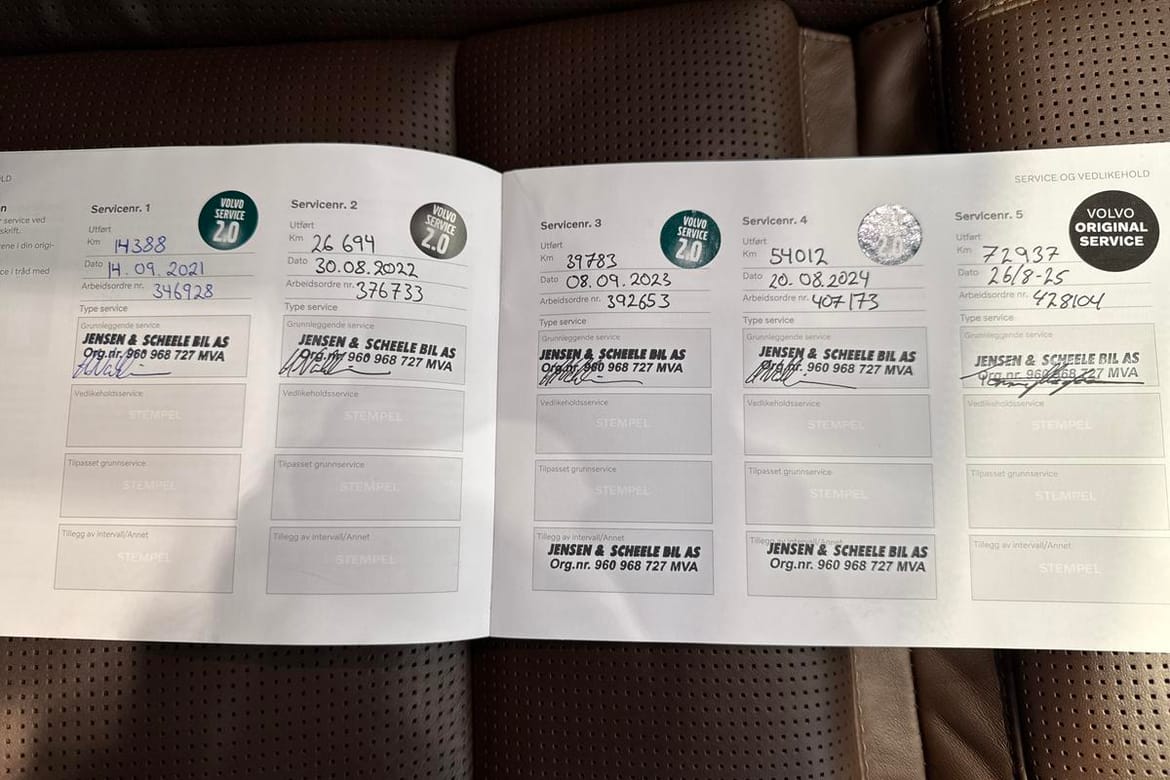 Som Inscription SE-utgave er bilen meget godt utstyrt og byr på et elegant, skandinavisk interiør med førsteklasses materialvalg. Her finner du blant annet ventilert nappaskinn, Bowers&Wilkins lydanlegg, 360 kamera, elektriske seter med minne, parkeringssensorer foran og bak, og Volvos intuitive infotainmentsystem.