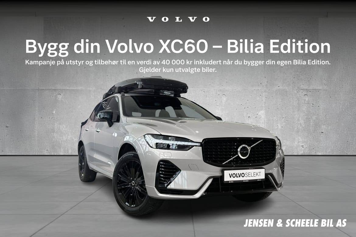 Ved kjøp av Volvo XC60 i kampanjeperioden 13. oktober – 31. oktober 2025, får du muligheten til å bygge din egen Bilia Edition – en spesialutgave med attraktivt ekstrautstyr inkludert i prisen.