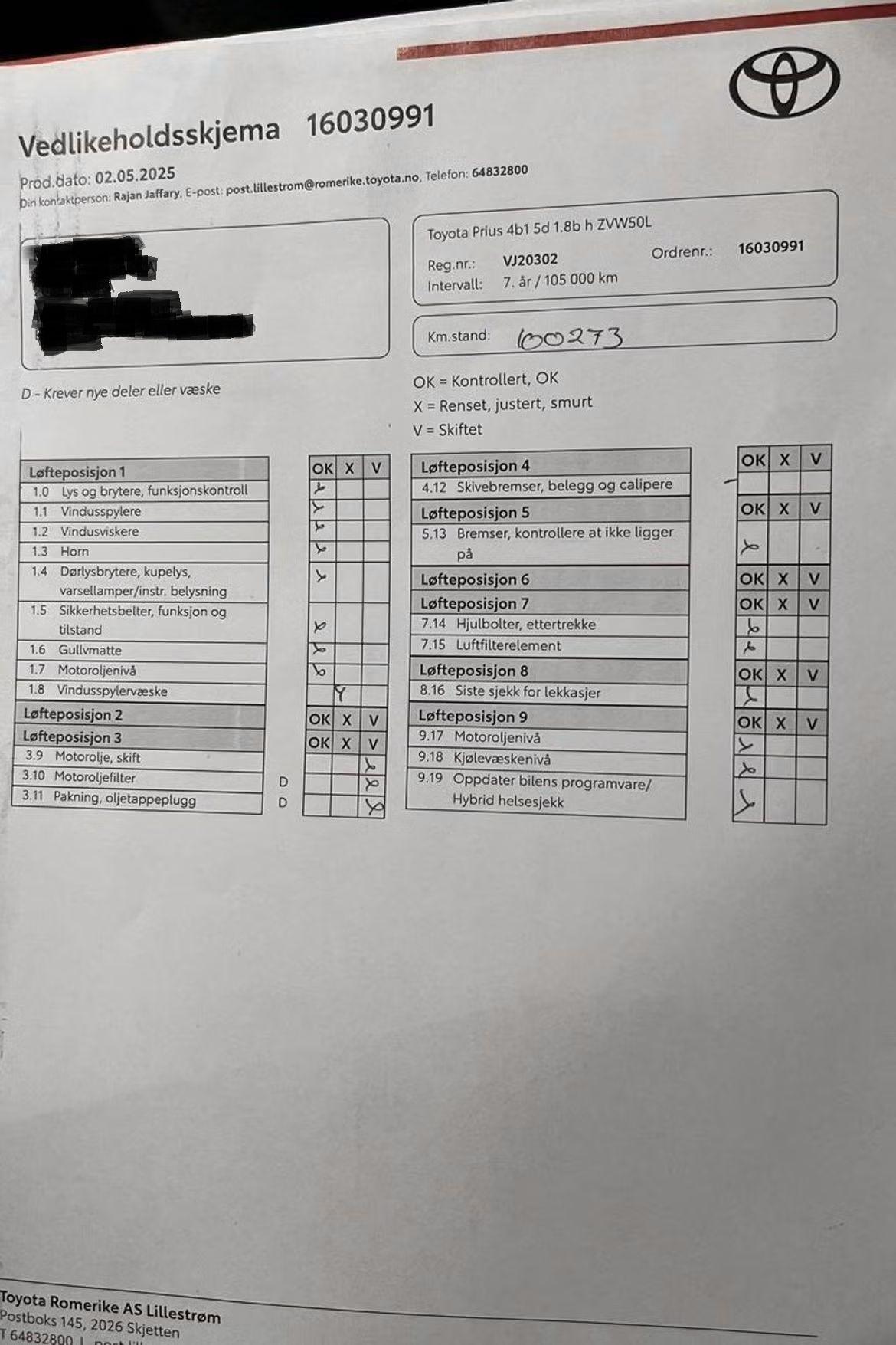 Alle servicer er fulgt opp på denne bilen, hos merkeforhandler. Fortsetter man med dette serviceprogrammet, har man garanti fra Toyota inntil bilen er 10 år gammel eller opp til 200.000 km.