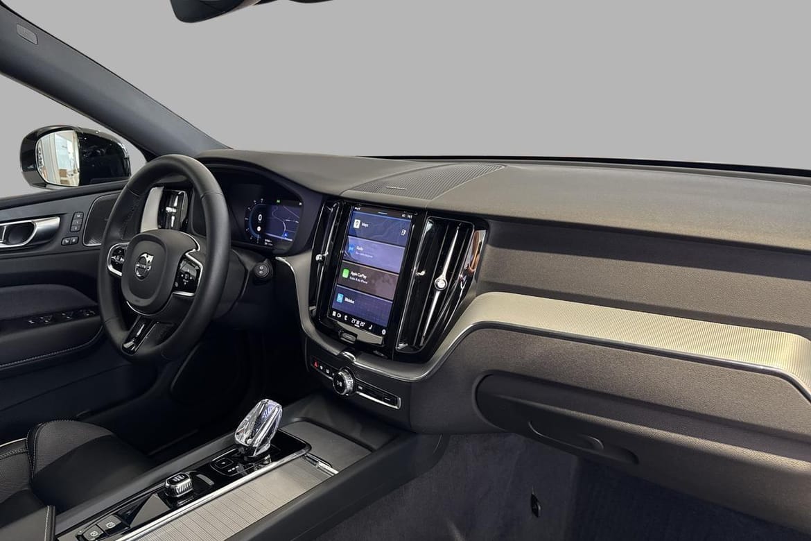 Vi har gleden av å tilby en svært attraktiv og godt utstyrt Volvo XC60 Recharge T6 Plug-in Hybrid i den eksklusive fargen Silver Dawn. Dette er Plus-utgaven med Dark Edition-pakken som er en perfekt kombinasjon av kraft, komfort og skandinavisk eleganse.