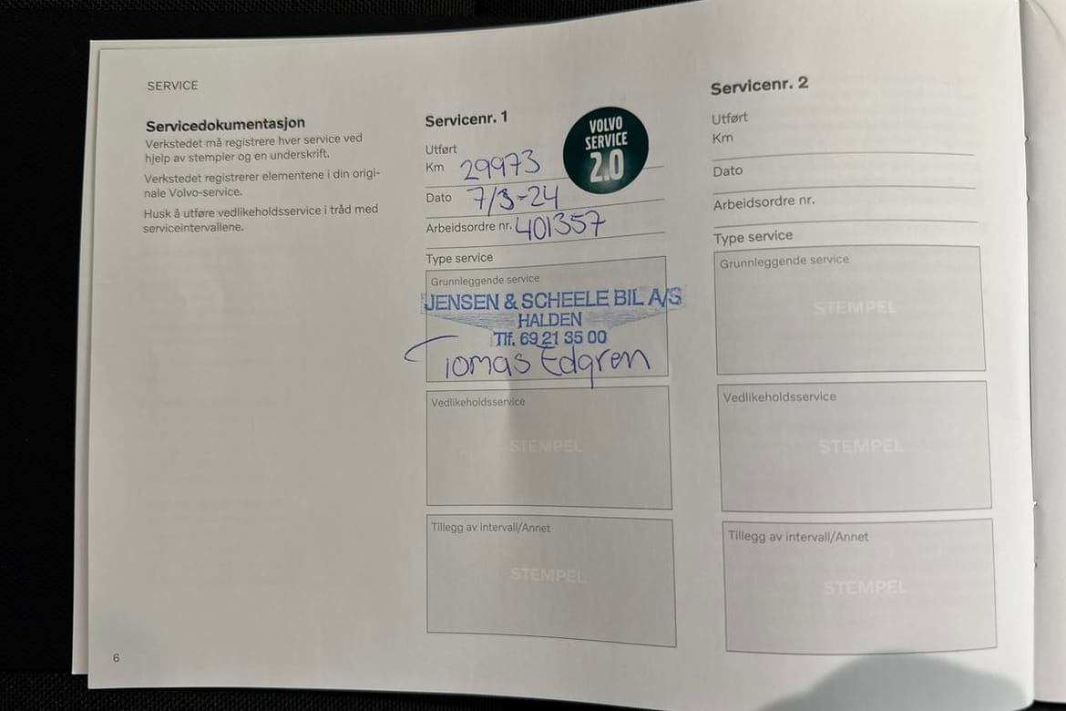 En VOLVO SELEKT bil leveres med:
