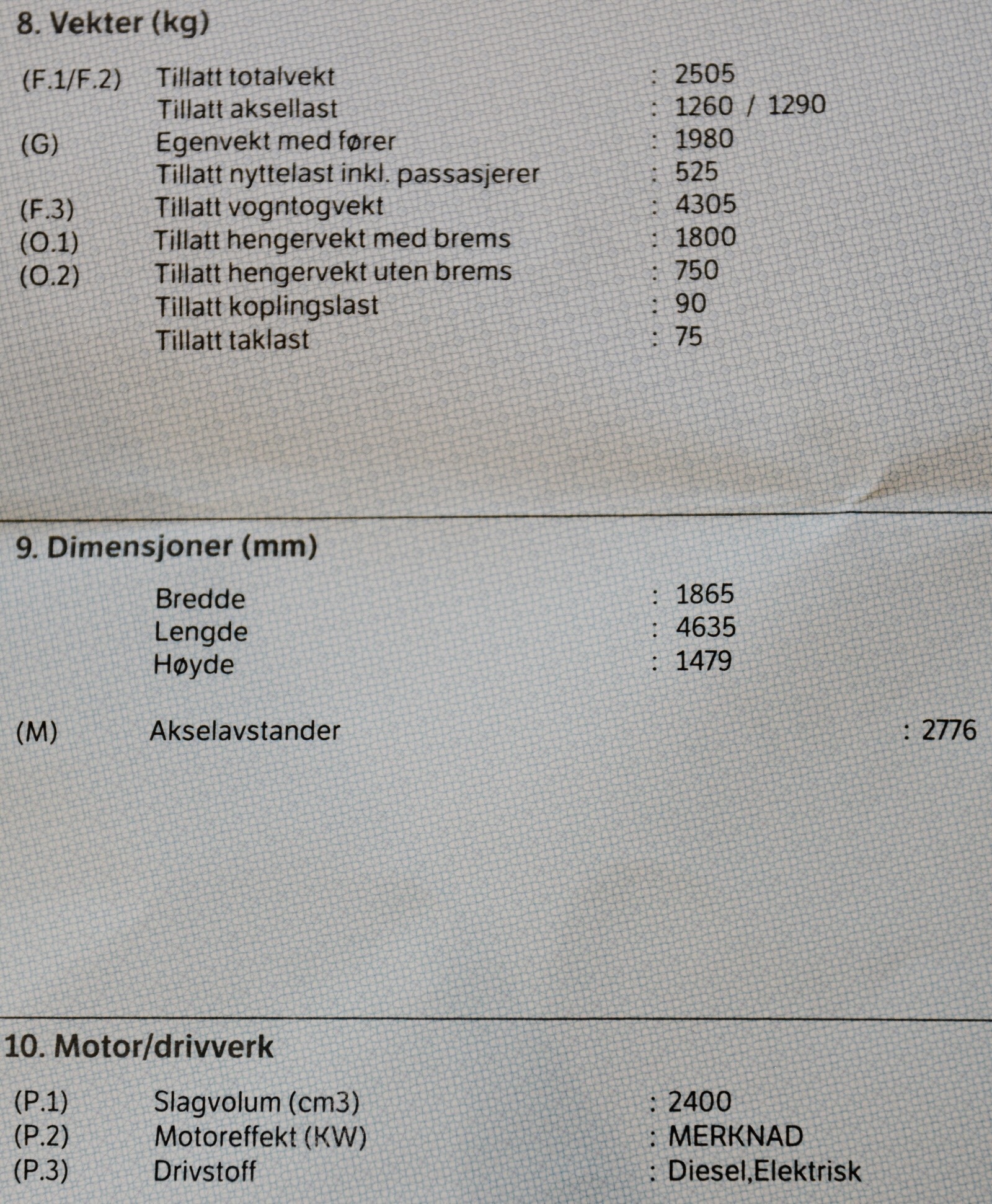 Vekt 1905 kg