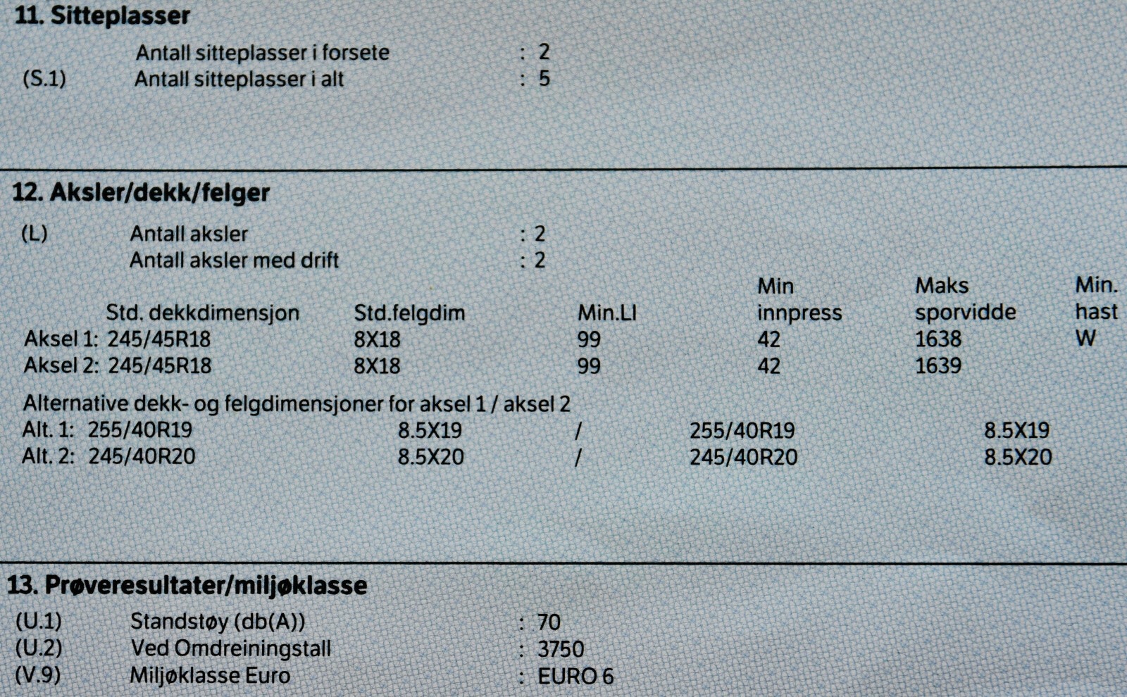 Bilen er levert med: