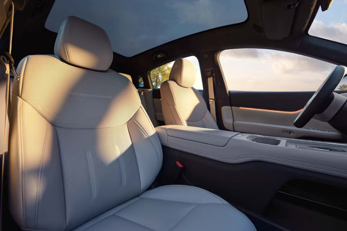 Setene er fleksible. De fremre setene kan justeres bakover for å være nesten 180° flatt med de bakre setene, og de bakre setene kan justeres i 12 posisjoner med en maksimal vinkel på 38,4°. Kupéen forvandles til en lounge hvor du kan nye musikk eller en film fra den store infotainmentskjermen.